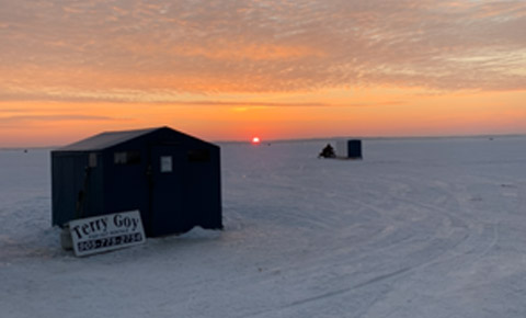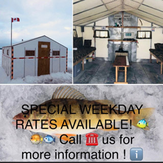 ** No equipment rentals are available on site so please ensure you have all the proper fishing gear. ** Blue Ice Hut Rentals has a site office conveniently located on shore which is accessible from the road.