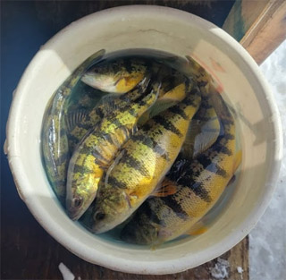An advantage of using an ice-hut operator is they do their best to guarantee a catch, and Perch tends to be easily caught however don't be surprised to catch the occasional pike or whitefish.